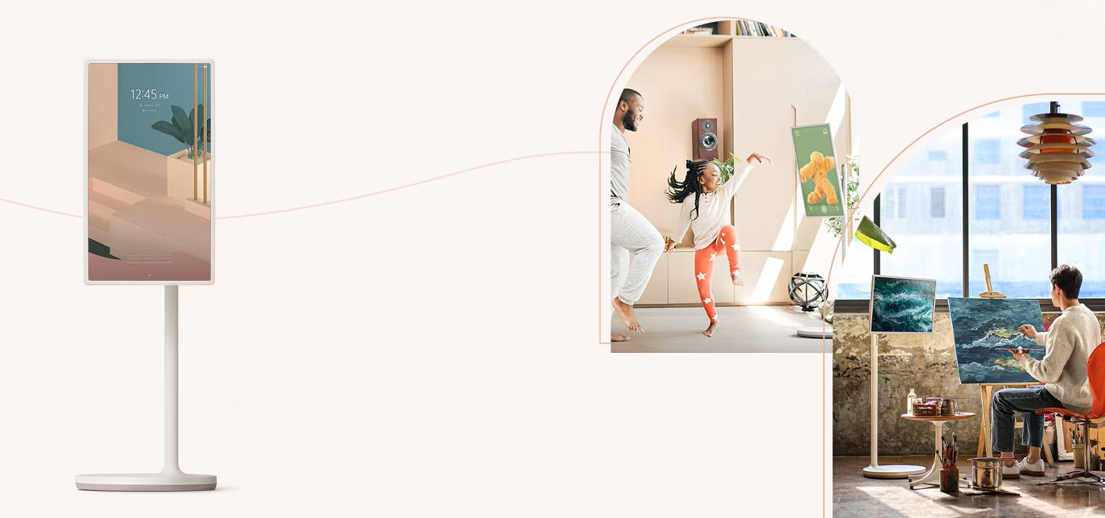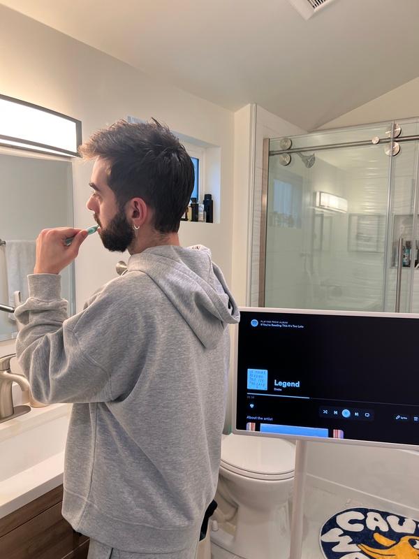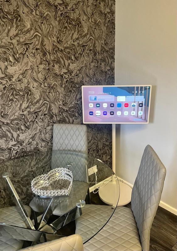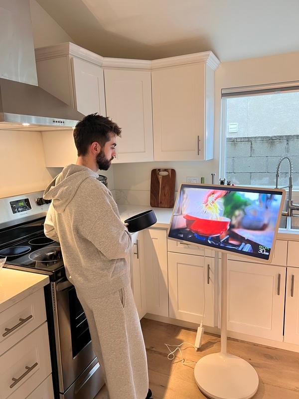 Der integrierte Akku ermöglicht die kabellose Nutzung des StanbyME TV und ermöglicht Ihnen, ihn überall aufzustellen.Genießen Sie bis zu 3 Stunden Akkulaufzeit – egal, ob Sie einen Film ansehen, im Internet surfen oder beim Kochen ein Video ansehen.
