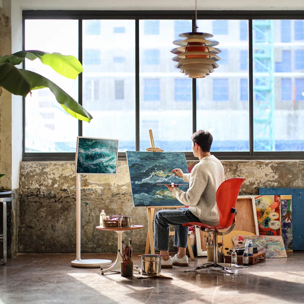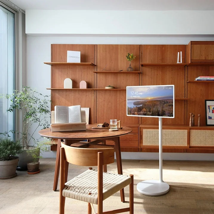 - Mit fünf Rädern in der Basis können Sie das StanbyMe einfach über eben die Oberflächen von Raum zu Raum rollen. Ein rotierbarer Bildschirm setzt den Touchscreen-Monitor einfach im Hoch- oder Querformat